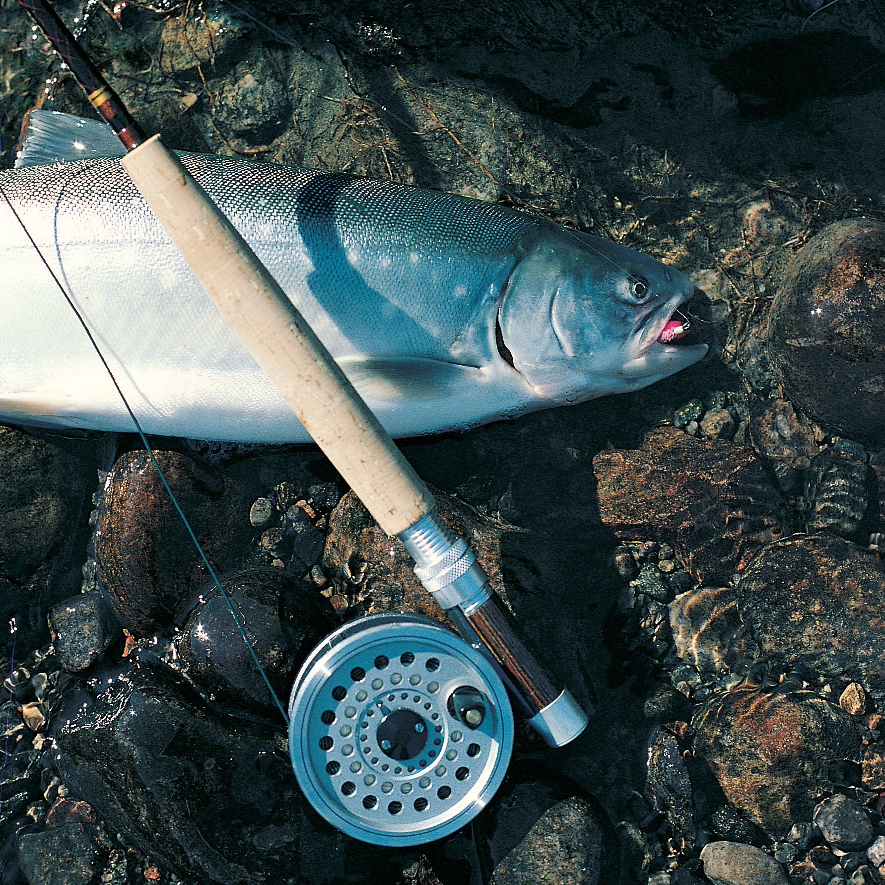Der måtte en del opsøgende arbejde til, førend jeg fandt frem til disse pladser. Jeg tilbagelagde mange kilometer med spinnestangen og en rødprikket Mepps spinner størrelse tre. Min første fisk var en nystegen blank fisk på omkring 4 kg – en fisk, der absolut ikke ville ud af sit dybe høl.